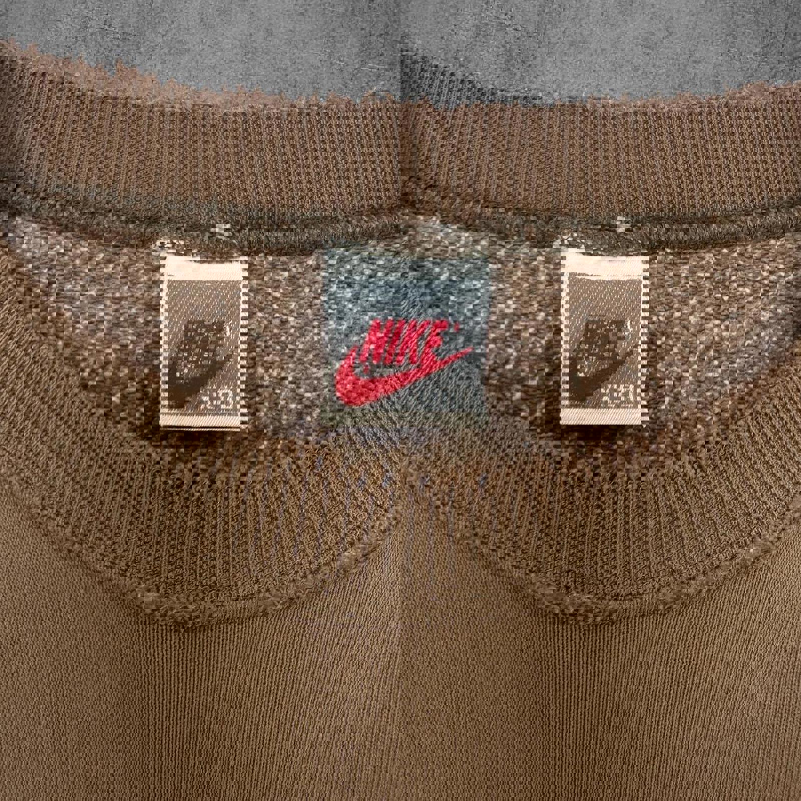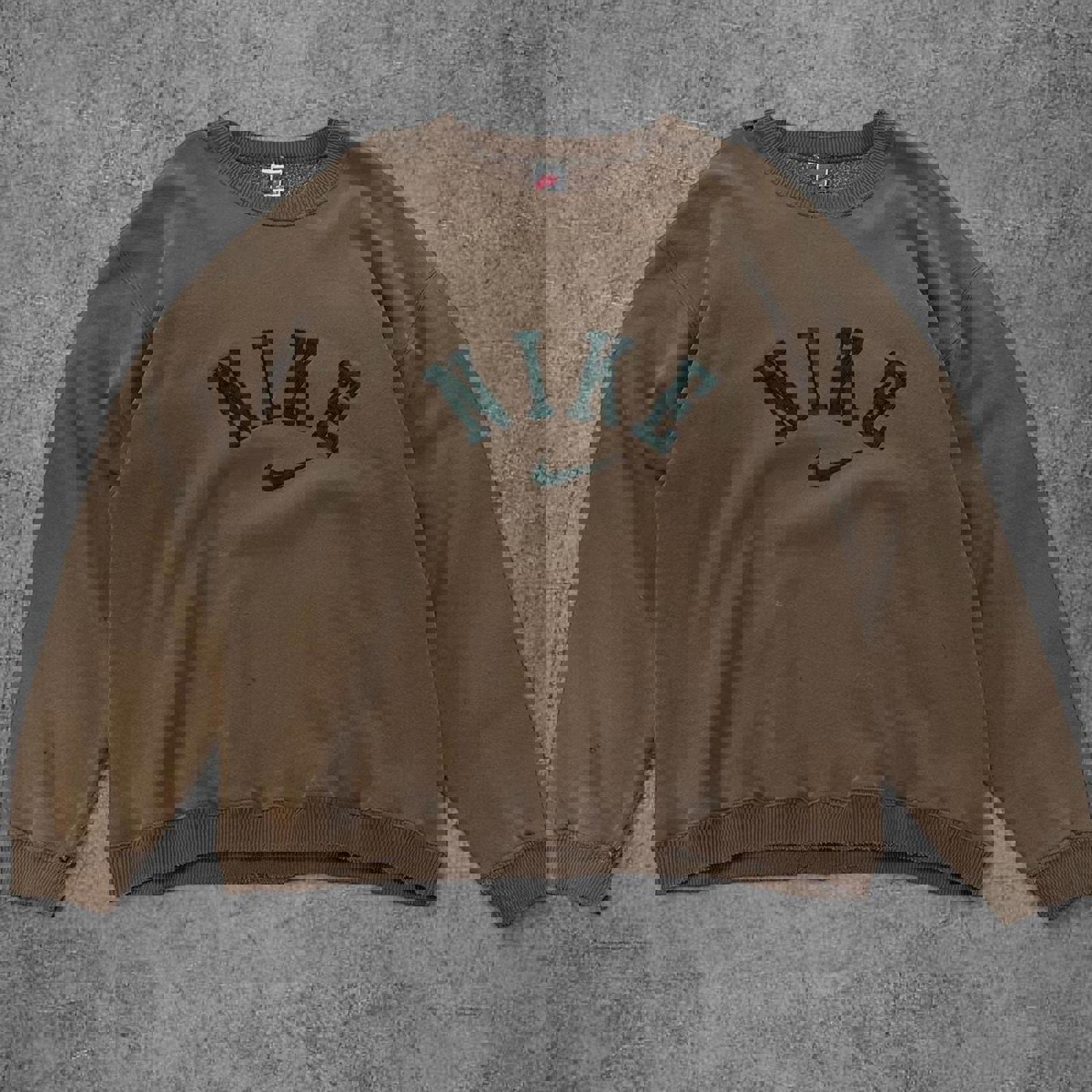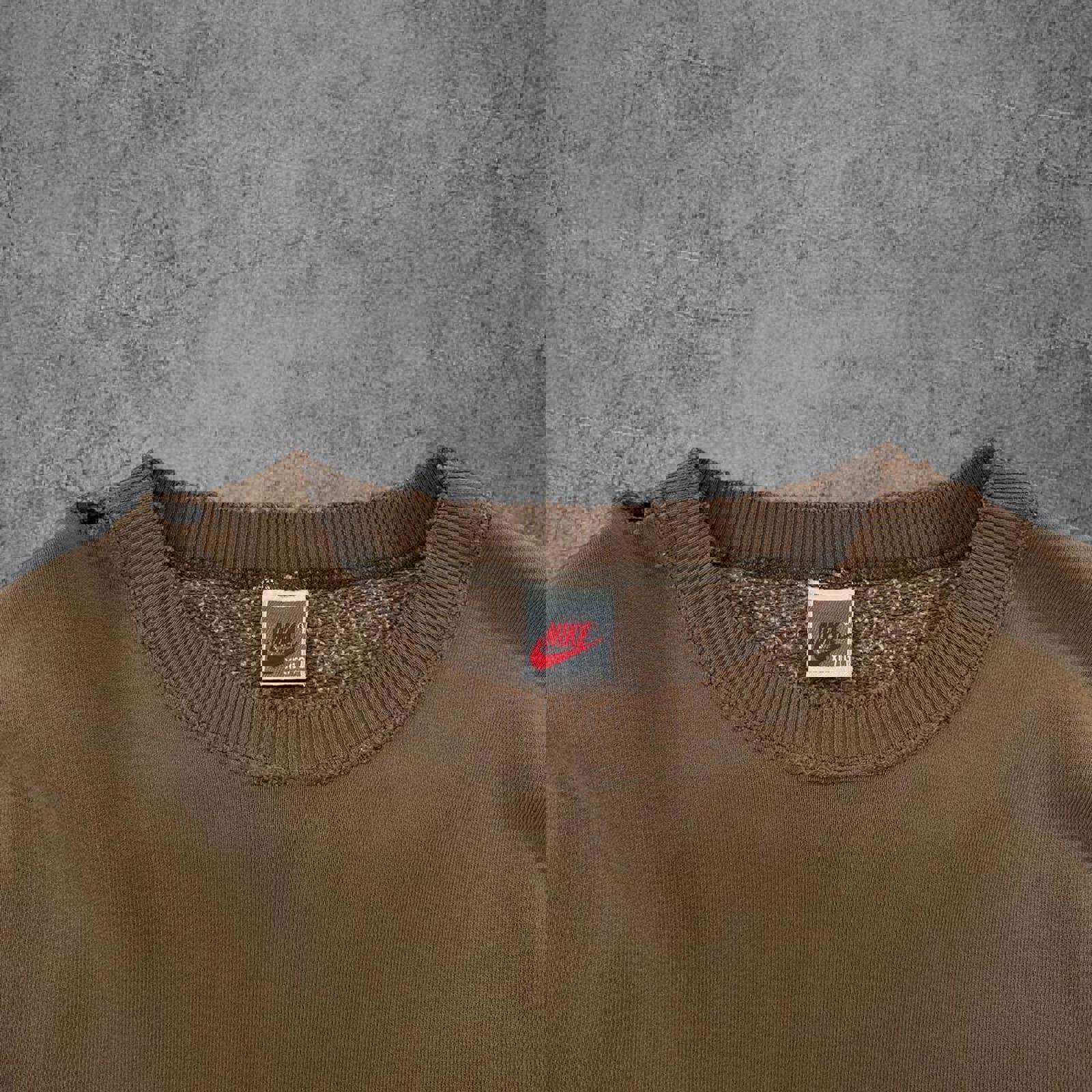 Vintage 90s Nike Centre Swoosh Brown Spellout Crewneck